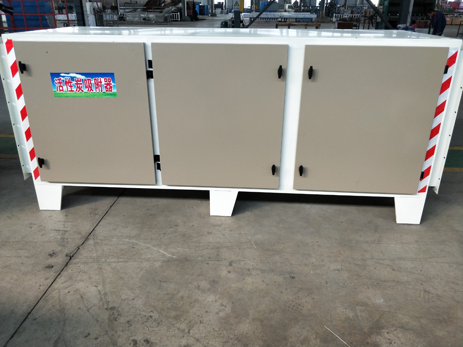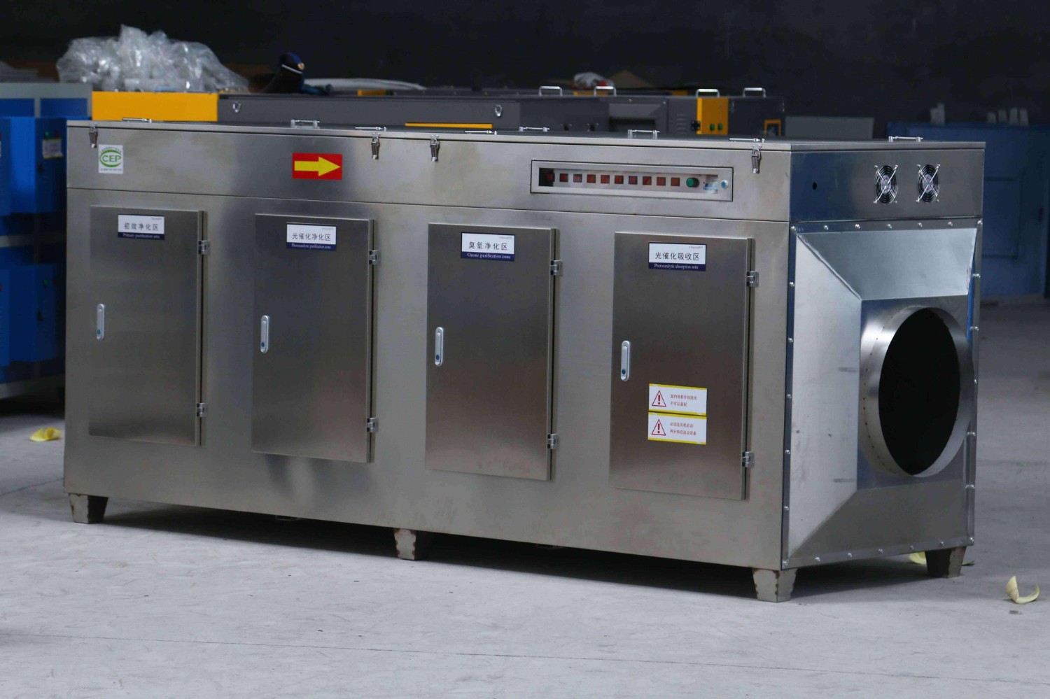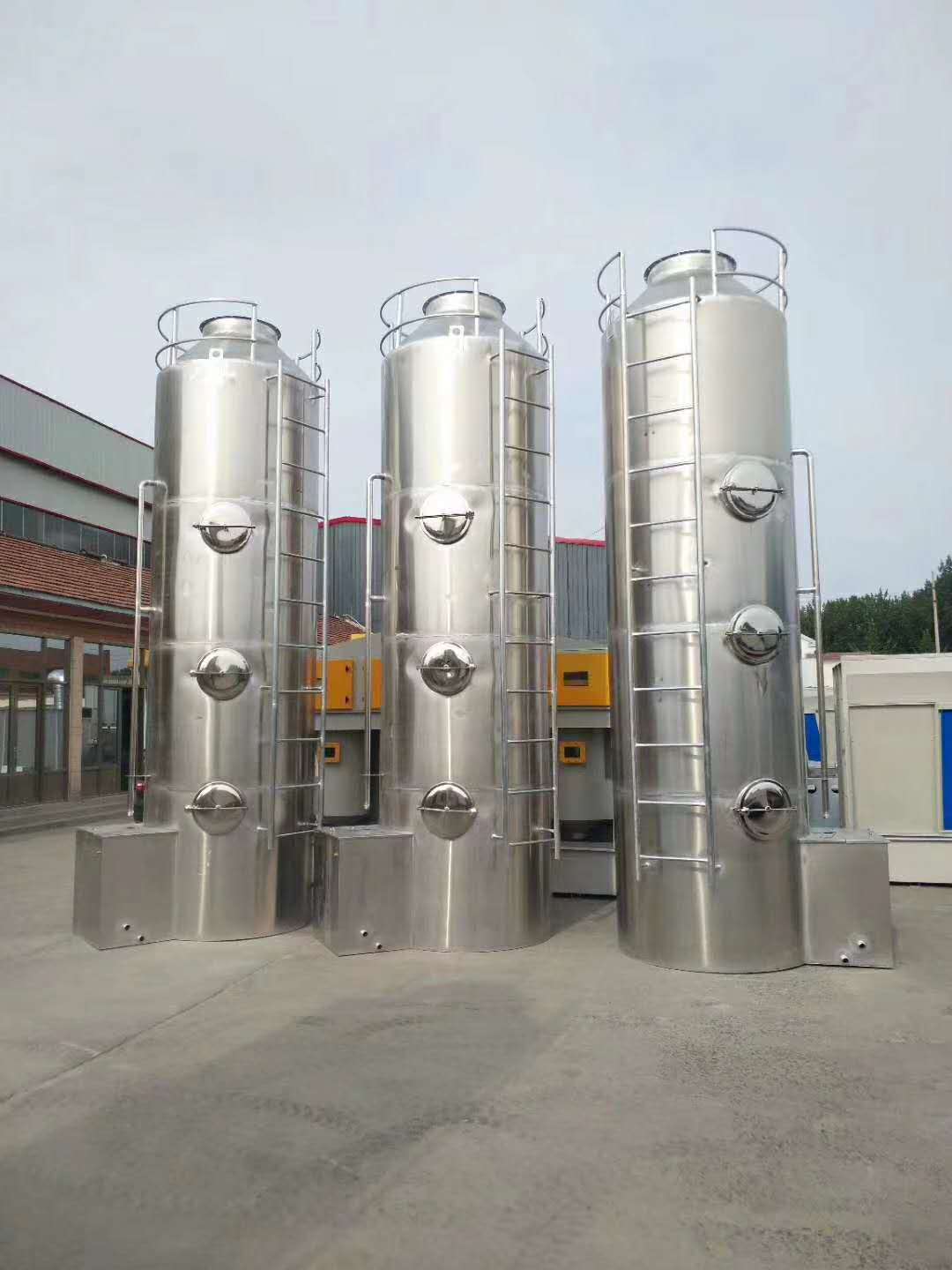 處理工藝:車間有一人噴漆過程中產生的廢氣需要進行治理。所使用油漆為水性漆,噴漆廢氣首先經由高效噴淋塔將漆霧顆粒過濾及完成廢氣的降溫,后經由低溫等離子+UV光氧催化+活性炭吸附來完成電離分解、光催化分解及吸附處理。該處經設備處理以后的廢氣由離心式風機采用負壓進氣,通過煙囪15米高空排放。