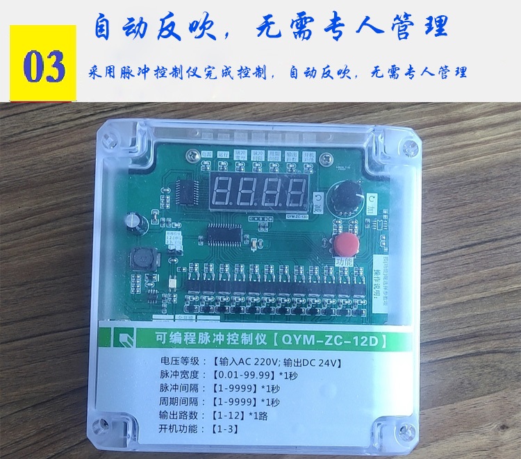 由清灰控制裝置按差壓設定值或清灰時間設定值后,按設定程序打開電控脈沖閥,進行停風噴吹,利用壓縮空氣瞬間噴